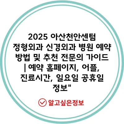 2025 아산천안센텀 정형외과 신경외과 병원 예약 방법 및 추천 전문의 가이드 | 예약 홈페이지, 어플, 진료시간, 일요일 공휴일 정보”