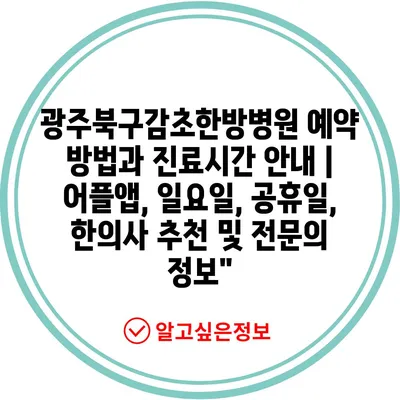 광주북구감초한방병원 예약 방법과 진료시간 안내 | 어플앱, 일요일, 공휴일, 한의사 추천 및 전문의 정보”