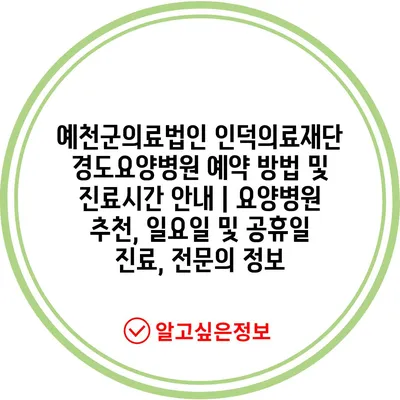 예천군의료법인 인덕의료재단 경도요양병원 예약 방법 및 진료시간 안내 | 요양병원 추천, 일요일 및 공휴일 진료, 전문의 정보