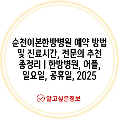 순천이본한방병원 예약 방법 및 진료시간, 전문의 추천 총정리 | 한방병원, 어플, 일요일, 공휴일, 2025