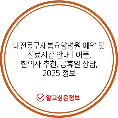 대전동구새봄요양병원 예약 및 진료시간 안내 | 어플, 한의사 추천, 공휴일 상담, 2025 정보