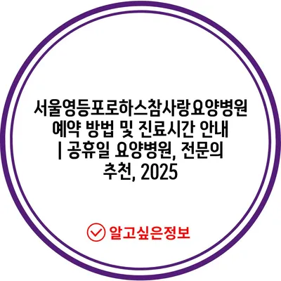 서울영등포로하스참사랑요양병원 예약 방법 및 진료시간 안내 | 공휴일 요양병원, 전문의 추천, 2025
