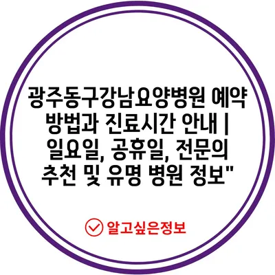 광주동구강남요양병원 예약 방법과 진료시간 안내 | 일요일, 공휴일, 전문의 추천 및 유명 병원 정보”