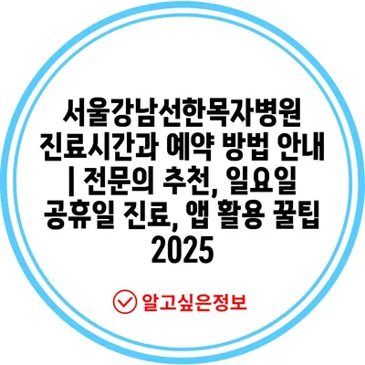 서울강남선한목자병원 진료시간과 예약 방법 안내 | 전문의 추천, 일요일 공휴일 진료, 앱 활용 꿀팁 2025