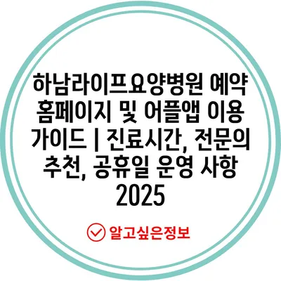 하남라이프요양병원 예약 홈페이지 및 어플앱 이용 가이드 | 진료시간, 전문의 추천, 공휴일 운영 사항 2025