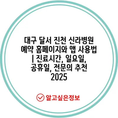 대구 달서 진천 신라병원 예약 홈페이지와 앱 사용법 | 진료시간, 일요일, 공휴일, 전문의 추천 2025