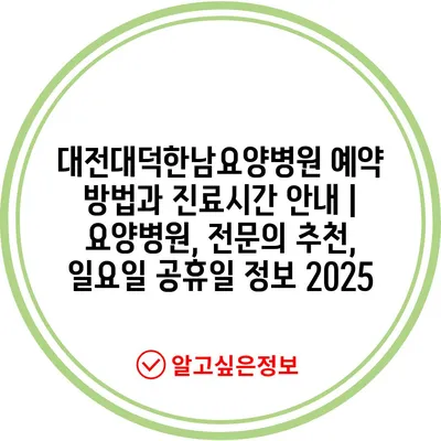 대전대덕한남요양병원 예약 방법과 진료시간 안내 | 요양병원, 전문의 추천, 일요일 공휴일 정보 2025