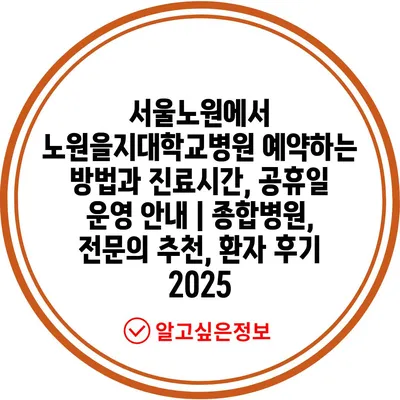 서울노원에서 노원을지대학교병원 예약하는 방법과 진료시간, 공휴일 운영 안내 | 종합병원, 전문의 추천, 환자 후기 2025