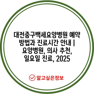 대전중구백세요양병원 예약 방법과 진료시간 안내 | 요양병원, 의사 추천, 일요일 진료, 2025