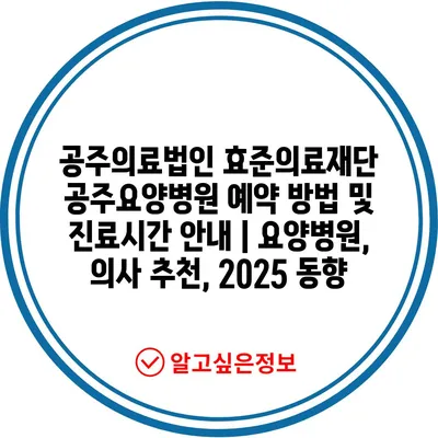 공주의료법인 효준의료재단 공주요양병원 예약 방법 및 진료시간 안내 | 요양병원, 의사 추천, 2025 동향