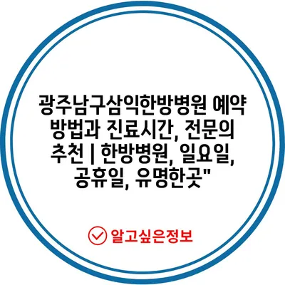 광주남구삼익한방병원 예약 방법과 진료시간, 전문의 추천 | 한방병원, 일요일, 공휴일, 유명한곳”