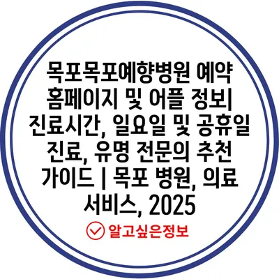 목포목포예향병원 예약 홈페이지 및 어플 정보| 진료시간, 일요일 및 공휴일 진료, 유명 전문의 추천 가이드 | 목포 병원, 의료 서비스, 2025