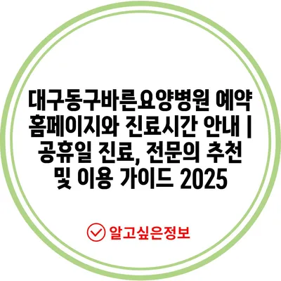 대구동구바른요양병원 예약 홈페이지와 진료시간 안내 | 공휴일 진료, 전문의 추천 및 이용 가이드 2025