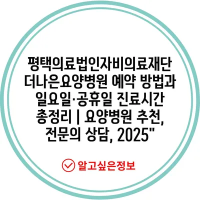 평택의료법인자비의료재단 더나은요양병원 예약 방법과 일요일·공휴일 진료시간 총정리 | 요양병원 추천, 전문의 상담, 2025″
