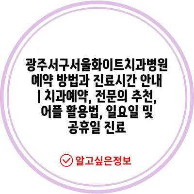 광주서구서울화이트치과병원 예약 방법과 진료시간 안내 | 치과예약, 전문의 추천, 어플 활용법, 일요일 및 공휴일 진료