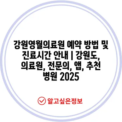강원영월의료원 예약 방법 및 진료시간 안내 | 강원도, 의료원, 전문의, 앱, 추천 병원 2025