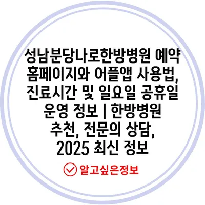 성남분당나로한방병원 예약 홈페이지와 어플앱 사용법, 진료시간 및 일요일 공휴일 운영 정보 | 한방병원 추천, 전문의 상담, 2025 최신 정보
