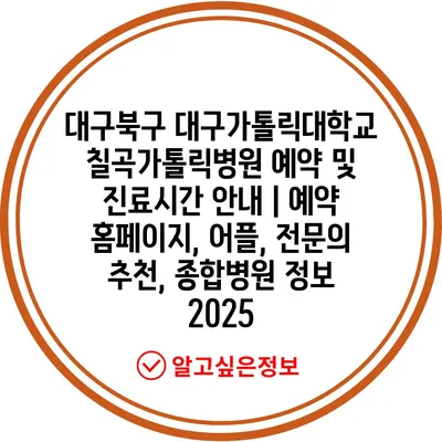대구북구 대구가톨릭대학교 칠곡가톨릭병원 예약 및 진료시간 안내 | 예약 홈페이지, 어플, 전문의 추천, 종합병원 정보 2025
