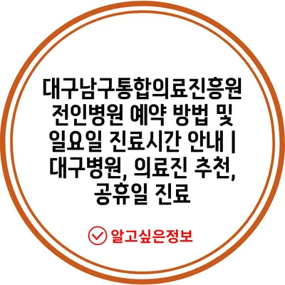대구남구통합의료진흥원 전인병원 예약 방법 및 일요일 진료시간 안내 | 대구병원, 의료진 추천, 공휴일 진료