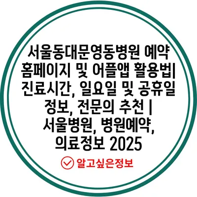 서울동대문영동병원 예약 홈페이지 및 어플앱 활용법| 진료시간, 일요일 및 공휴일 정보, 전문의 추천 | 서울병원, 병원예약, 의료정보 2025