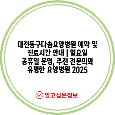 대전동구다솜요양병원 예약 및 진료시간 안내 | 일요일 공휴일 운영, 추천 전문의와 유명한 요양병원 2025