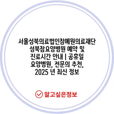 서울성북의료법인참예원의료재단 성북참요양병원 예약 및 진료시간 안내 | 공휴일 요양병원, 전문의 추천, 2025 년 최신 정보
