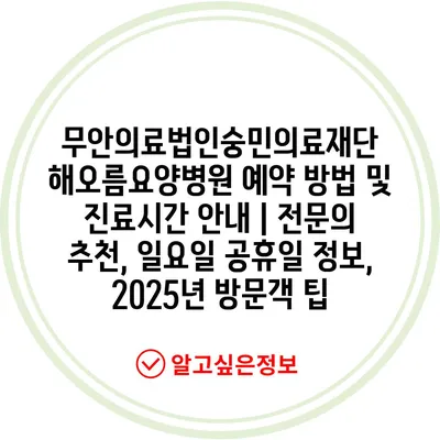 무안의료법인숭민의료재단 해오름요양병원 예약 방법 및 진료시간 안내 | 전문의 추천, 일요일 공휴일 정보, 2025년 방문객 팁