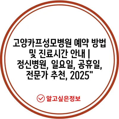 고양카프성모병원 예약 방법 및 진료시간 안내 | 정신병원, 일요일, 공휴일, 전문가 추천, 2025″