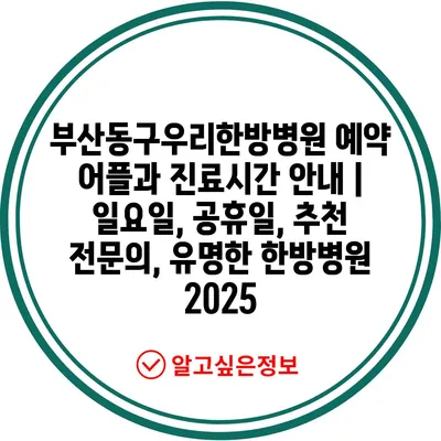 부산동구우리한방병원 예약 어플과 진료시간 안내 | 일요일, 공휴일, 추천 전문의, 유명한 한방병원 2025