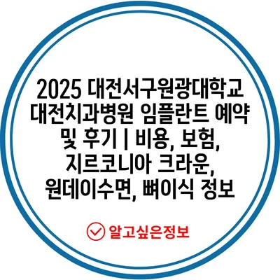 2025 대전서구원광대학교 대전치과병원 임플란트 예약 및 후기 | 비용, 보험, 지르코니아 크라운, 원데이수면, 뼈이식 정보