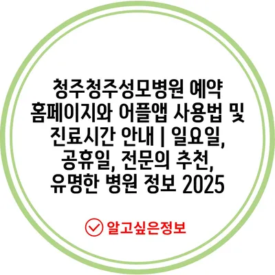 청주청주성모병원 예약 홈페이지와 어플앱 사용법 및 진료시간 안내 | 일요일, 공휴일, 전문의 추천, 유명한 병원 정보 2025