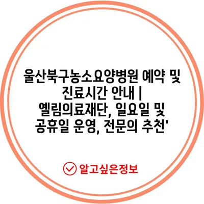 울산북구농소요양병원 예약 및 진료시간 안내 | 옐림의료재단, 일요일 및 공휴일 운영, 전문의 추천’