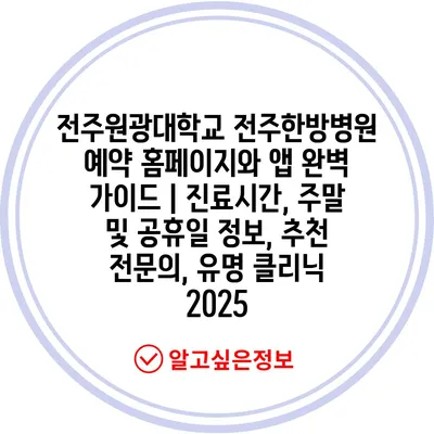 전주원광대학교 전주한방병원 예약 홈페이지와 앱 완벽 가이드 | 진료시간, 주말 및 공휴일 정보, 추천 전문의, 유명 클리닉 2025
