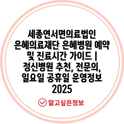 세종연서면의료법인 은혜의료재단 은혜병원 예약 및 진료시간 가이드 | 정신병원 추천, 전문의, 일요일 공휴일 운영정보 2025