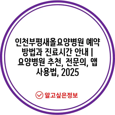인천부평새올요양병원 예약 방법과 진료시간 안내 | 요양병원 추천, 전문의, 앱 사용법, 2025