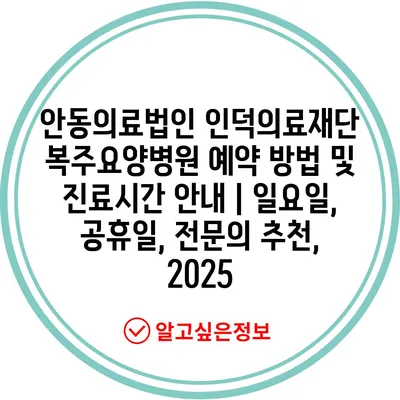안동의료법인 인덕의료재단 복주요양병원 예약 방법 및 진료시간 안내 | 일요일, 공휴일, 전문의 추천, 2025