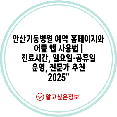 안산기둥병원 예약 홈페이지와 어플 앱 사용법 | 진료시간, 일요일·공휴일 운영, 전문가 추천 2025″