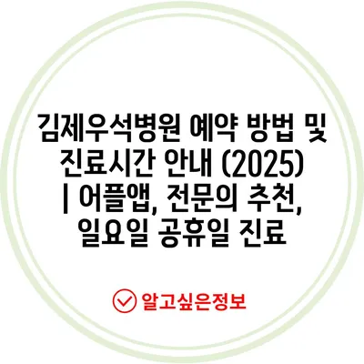 김제우석병원 예약 방법 및 진료시간 안내 (2025) | 어플앱, 전문의 추천, 일요일 공휴일 진료