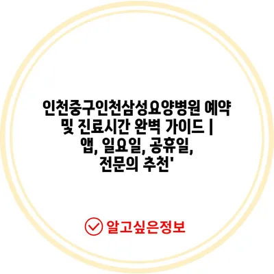인천중구인천삼성요양병원 예약 및 진료시간 완벽 가이드 | 앱, 일요일, 공휴일, 전문의 추천’