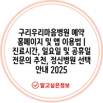 구리우리마음병원 예약 홈페이지 및 앱 이용법 | 진료시간, 일요일 및 공휴일 전문의 추천, 정신병원 선택 안내 2025