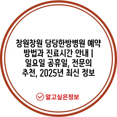 창원창원 당당한방병원 예약 방법과 진료시간 안내 | 일요일 공휴일, 전문의 추천, 2025년 최신 정보