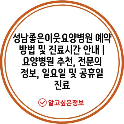 성남좋은이웃요양병원 예약 방법 및 진료시간 안내 | 요양병원 추천, 전문의 정보, 일요일 및 공휴일 진료