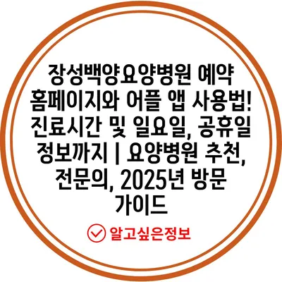 장성백양요양병원 예약 홈페이지와 어플 앱 사용법! 진료시간 및 일요일, 공휴일 정보까지 | 요양병원 추천, 전문의, 2025년 방문 가이드