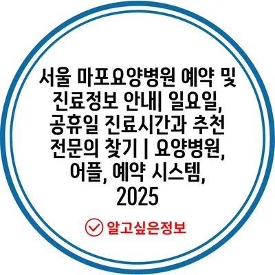 서울 마포요양병원 예약 및 진료정보 안내| 일요일, 공휴일 진료시간과 추천 전문의 찾기 | 요양병원, 어플, 예약 시스템, 2025