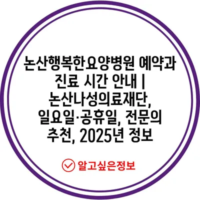 논산행복한요양병원 예약과 진료 시간 안내 | 논산나성의료재단, 일요일·공휴일, 전문의 추천, 2025년 정보