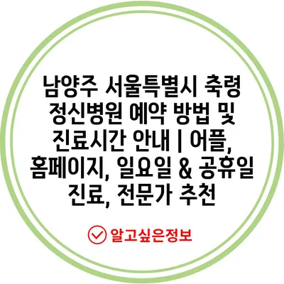 남양주 서울특별시 축령 정신병원 예약 방법 및 진료시간 안내 | 어플, 홈페이지, 일요일 & 공휴일 진료, 전문가 추천