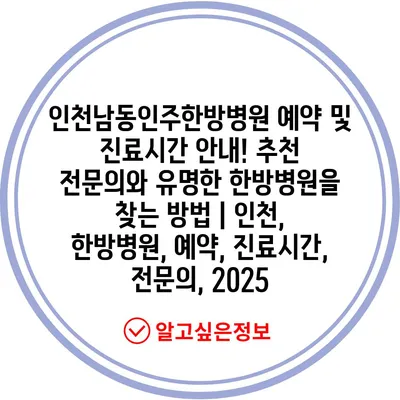인천남동인주한방병원 예약 및 진료시간 안내! 추천 전문의와 유명한 한방병원을 찾는 방법 | 인천, 한방병원, 예약, 진료시간, 전문의, 2025