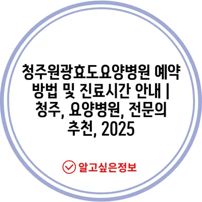 청주원광효도요양병원 예약 방법 및 진료시간 안내 | 청주, 요양병원, 전문의 추천, 2025