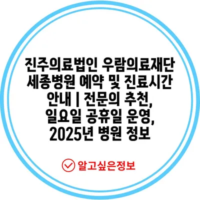 진주의료법인 우람의료재단 세종병원 예약 및 진료시간 안내 | 전문의 추천, 일요일 공휴일 운영, 2025년 병원 정보