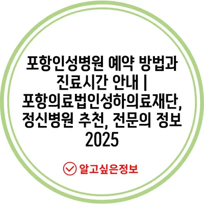 포항인성병원 예약 방법과 진료시간 안내 | 포항의료법인성하의료재단, 정신병원 추천, 전문의 정보 2025